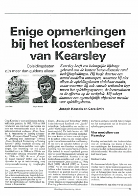 Kessels, J., & Smit, C. (1988). Enige opmerkingen bij het kostenbesef van Kearsley. Opleiding & Ontwikkeling, 11, 21–26. (Publication)