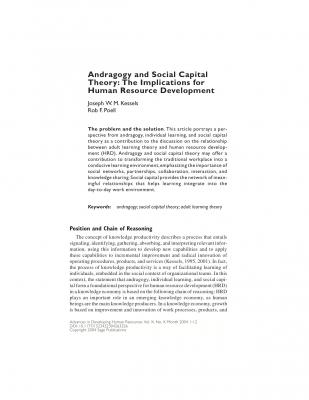 Kessels, J.W.M. & Poell, R.F. (2004) Andragology and social capital theory: the implications for Human Resource Development. Advances in Developing Human Resources, 6 (2) 146-157.