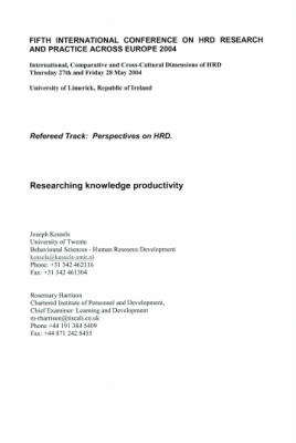Kessels, J., & Harrison, R. (2004). Researching knowledge productivity. For fifth international conference on HRD research and practice across europe 2004 (Publication)