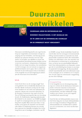 Kessels, J. (2004). Duurzaam ontwikkelen. Leren in Ontwikkeling, 4(12), 14-17. (Publication)