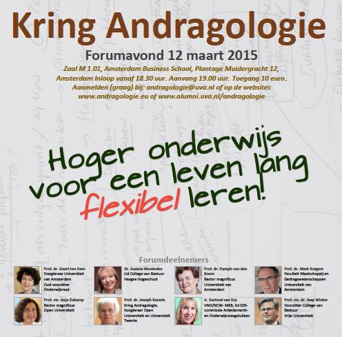 Op donderdag 12 maart organiseerde de Kring Andragologie aan de Amsterdam Business School een forumavond over "Hoger onderwijs voor een leven lang leren". 130 belangstellenden uit het hoger onderwijs namen deel aan de bijeenkomst, en leverden inbreng in de gedachtenwisseling.