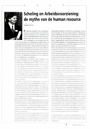 Kessels, J. (1995). Scholing en Arbeidsvoorziening: de mythe van de human resource. Opleidingen, 9. Gastcolumn in Magazine Opleidingen over: 'Scholing en Arbeidsvoorziening: de mythe van de human resource' Kessels, J. (1995). Scholing en Arbeidsvoorziening: de mythe van de human resource. Opleidingen, 9.
