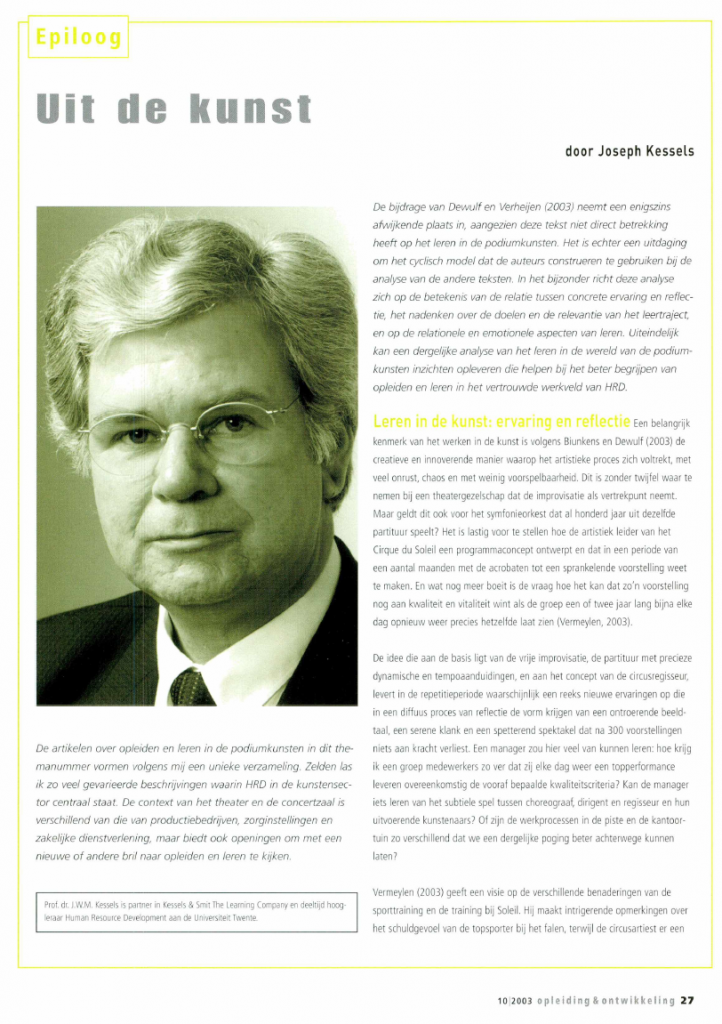 Kessels, J. (2003). Epiloog: uit de kunst. Opleiding & Ontwikkeling, 16(10), 27–29.