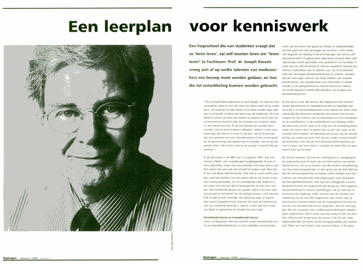Een hogeschool die van studenten vraagt dat ze 'leren leren', zal zelf moeten leren om "leren leren" te faciliteren. Prof. dr. Joseph Kessels vroeg zich af op welke talenten van medewerkers een beroep moet worden gedaan, en hoe die tot ontwikkeling kunnen worden gebracht in het onderwijskundig magazine voor de Hogeschool van Amsterdam.