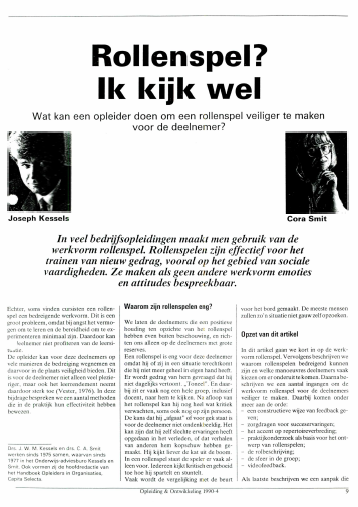 Kessels, J. W. M., & Smit, C. A. (1990). Rollenspel, ik kijk wel. Opleiding & Ontwikkeling, 4, 9–15.