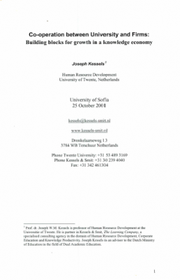 Kessels, J. (2001). Industrious Academia: Universities join forces with knowledge intensive organisations in dual programmes.