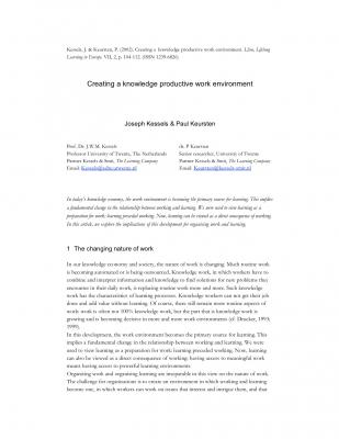 Kessels, J. & Keursten, P. (2002). Creating a knowledge productive work environment. Lline, Lifelong Learning in Europe, 7(2) 104-112.