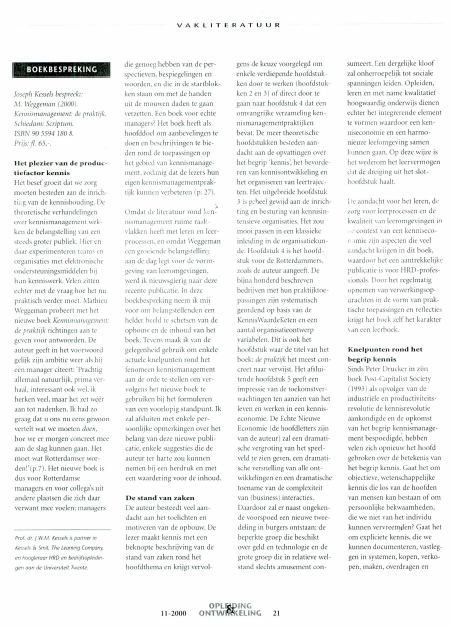 Kessels, J. (2000). Boekbespreking Kennismanagement: de praktijk. Opleiding & Ontwikkeling, 11, 21–24. Joseph Kessels bespreekt: M. Weggeman (2000). Kennismanagement: de praktijk. Schiedam: Scriptum. ISBN 90 5594 180 8. Kessels, J. (2000). Boekbespreking Kennismanagement de praktijk. Opleiding & Ontwikkeling, 11, 21–24..pdf