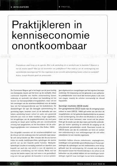 Kessels, J. (2006). Praktijkleren in kenniseconomie onomkoombaar. Profiel, 2, 30–33.