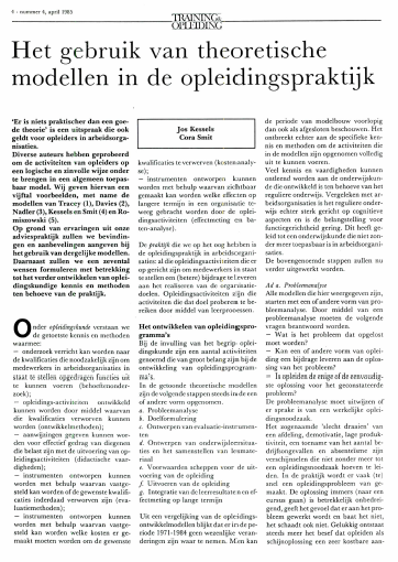 Kessels, J., & Smit, C. (1985). Het gebruik van theoretische modellen in de opleidingspraktijk. Training & Opleiding, (4), 4–10.