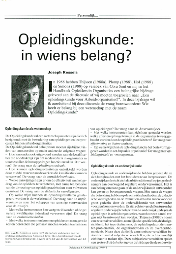In 1988 hebben Thijssen (1988a), Plomp (1988), Hol (1988) en Simons (1988) op verzoek van Cora Smit en Joseph Kessels in het Handboek Opleiders in Organisaties een belangrijke bijdrage geleverd aan de discussie of wij moeten toegroeien naar „Een opleidingskunde voor Arbeidsorganisaties?”. In deze bijdrage in Opleiding en Ontwikkeling sluit Joseph Kessels aan bij deze discussie en beantwoordt de vraag: Wie heeft er belang bij een wetenschap met de naam Opleidingskunde?