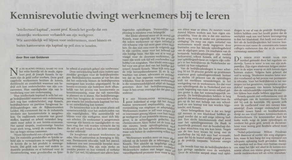 van Gelderen, R. (17 april 1996). Kennisrevolutie dwingt werknemers bij te leren. De Volkskrant (Leergeld), p. 7.
